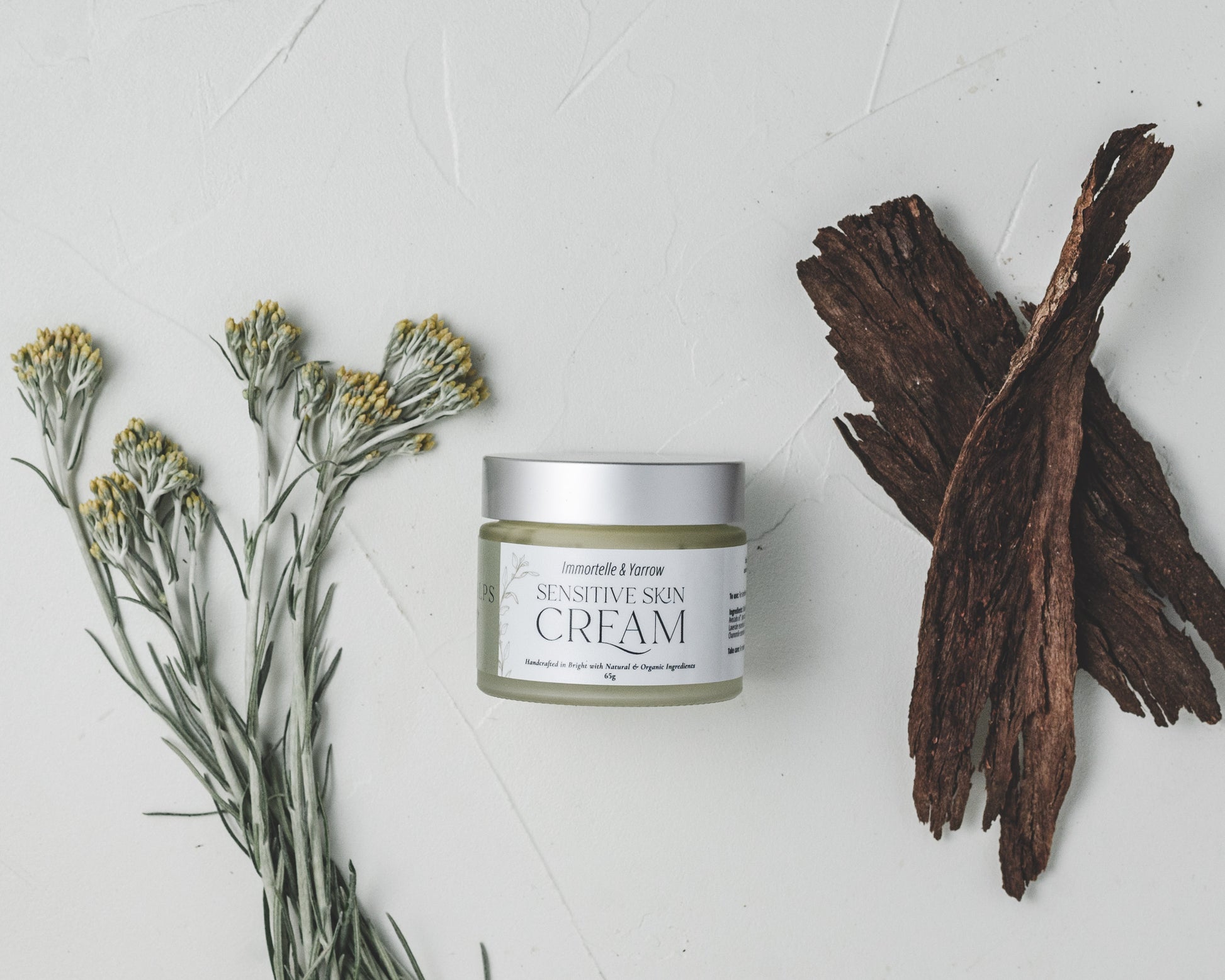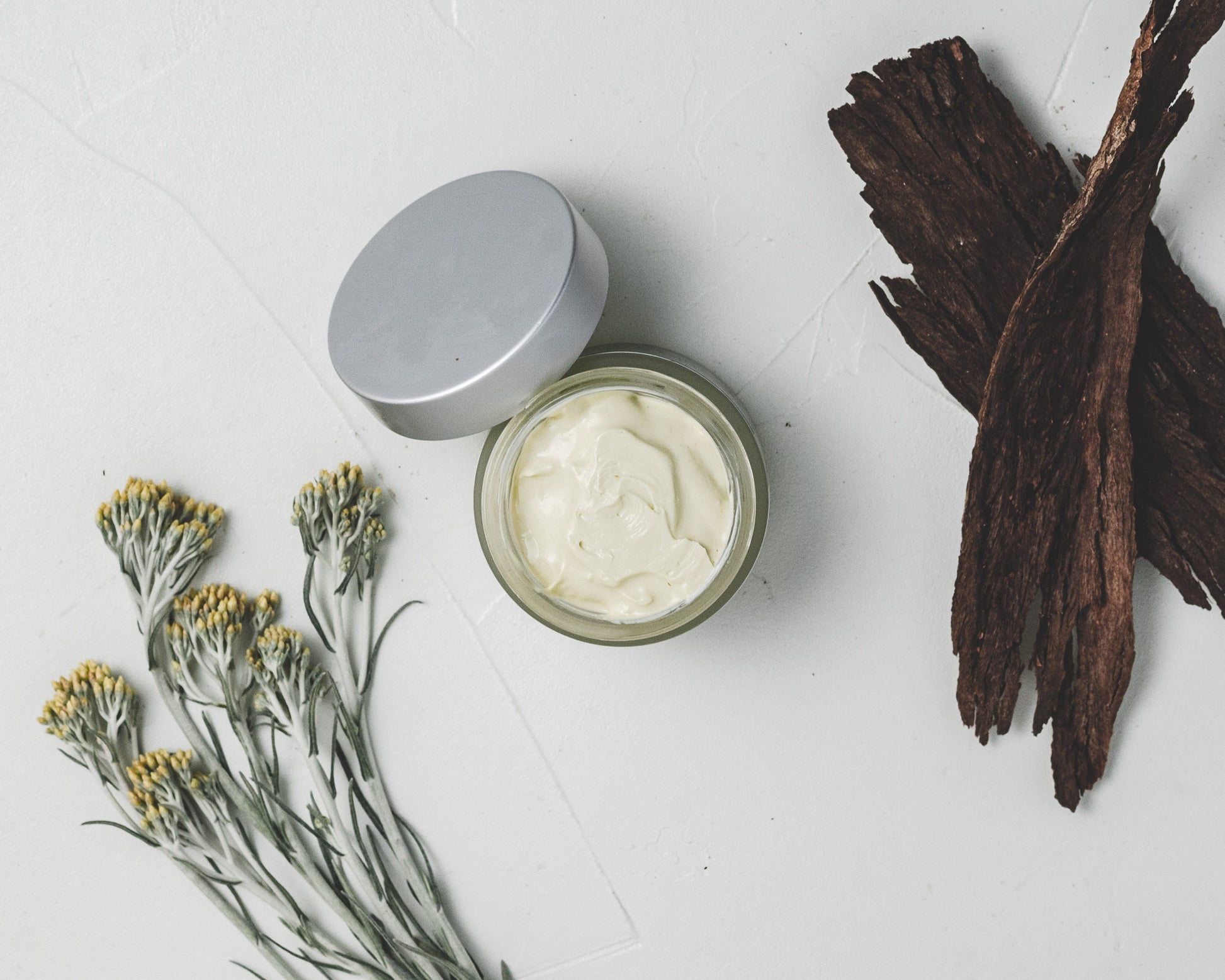 Ingredients list: Distilled water, Aloe Vera*, Cetearyl Olivate, Sorbitan Olivate, Shea butter*, Avocado oil*, Apricot oil*, Castor oil*, Argan oil*, St John’s Wort infused in Sunflower oil*, Lavender essential oil*, Patchouli essential oil*, Yarrow essential oil*, Immortelle essential oil*, German Chamomile essential oil*, Natural Vitamin E., Parfum. *Denotes Organic